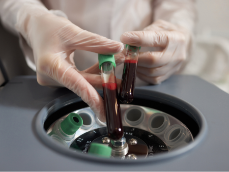 เลือดที่เก็บรวบรวมจะถูกปั่นแยกเพื่อ